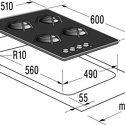 Индукционные конфорки - Нет, Тип варочной панели - Газовая, Установка - Независимая, Материал рабочей панели - Закаленное стекло, Глубина встраивания - 49, Дизайн ДОМИНО - Нет, Ширина встраивания - 56, Количество газовых конфорок - 4, Всего конфорок - 4, Количество конфорок быстрого разогрева - 1, Расположение панели управления - Сбоку, Тип управления - Механическое, Газ-контроль конфорок - Есть, Чугунная решетка - Есть, Электроподжиг - Есть, Ближняя левая конфорка - 3000, Ближняя правая конфорка - 1000, Цвет - Черный, Дальняя левая конфорка - 1750, Дальняя правая конфорка - 1750, Высота - 10.5, Ширина - 60, Глубина - 51, Вес - 12.4