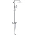 Устройство: душевая система • Смеситель: термостатический • Ручной душ (душевая лейка): размер 130 мм, настройки 3 шт • Верхний душ (тропический): размер 310 мм, настройки 1 шт • Комплектация: ручной душ, верхний душ, смеситель, стойка, шланг, крепление ручного душа