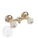 Назначение: для биде • Конструкция: двухрычажный • Монтаж: горизонтальный • Клапан: керамический • Материал: латунь, покрытие - бронза • Подводка: гибкая • Монтажные отверстия: 1 отверстие • Форма излива: традиционная • Душевая лейка в комплекте: нет • Аэратор: есть • Донный клапан в комплекте: есть