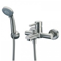 Назначение: ванна+душ • Конструкция: однорычажный • Монтаж: вертикальный • Клапан: керамический • Материал: латунь, покрытие - хром • Подводка: жесткая • Монтажные отверстия: 2 отверстия • Форма излива: традиционная • Душевая лейка в комплекте: есть • Держатель для душевой лейки: настенный держатель • Донный клапан в комплекте: есть